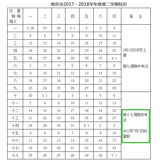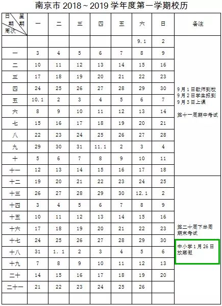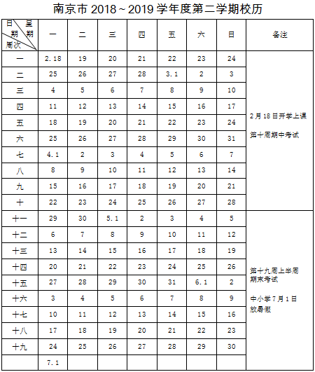 南京市教育局今天发布2018~2019学年度校历。