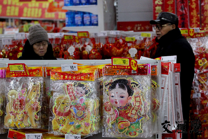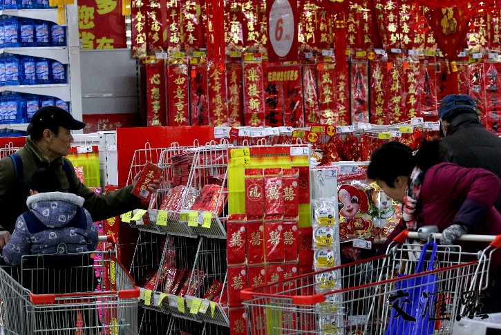 2月8日是农历小年,记者在南京应天大街的一大型超市内看到,来到喜庆饰品区挑选“福”字、选春联的市民络绎不绝,为迎接新年做准备。交汇点记者宋宁摄